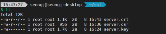SSL 인증서 생성 (참고 : sudo 넣으면 root 권한으로 생성됨)